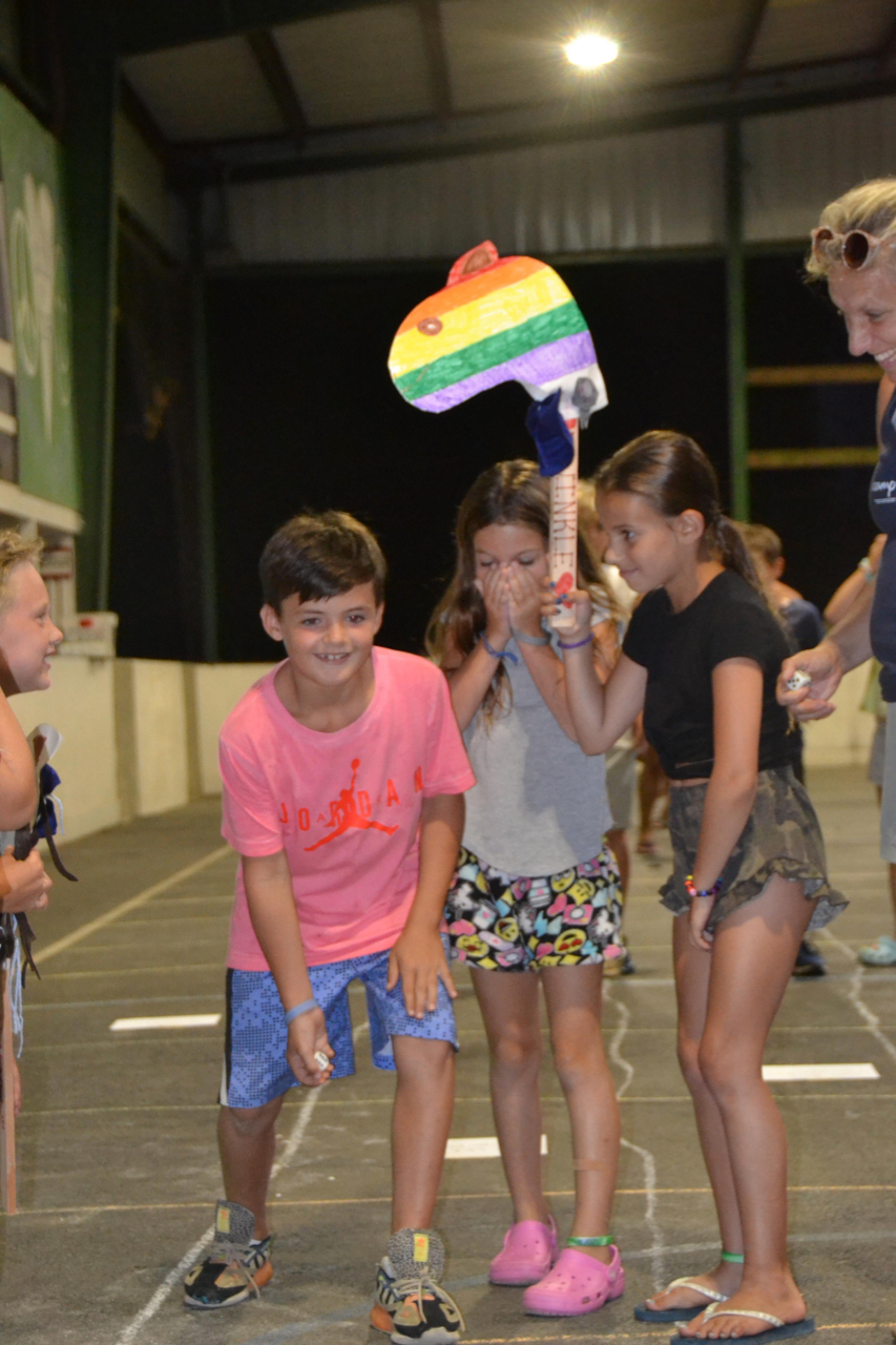 That night Color War broke out at Camp Saginaw. Blue Dairy Queen vs. Red McDonalds. They got all that for dinner! Ariel was on Blue.