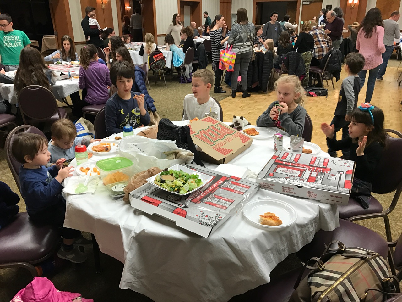 That night was a special service and pizza dinner for Purim. Eli was amazed at the service.