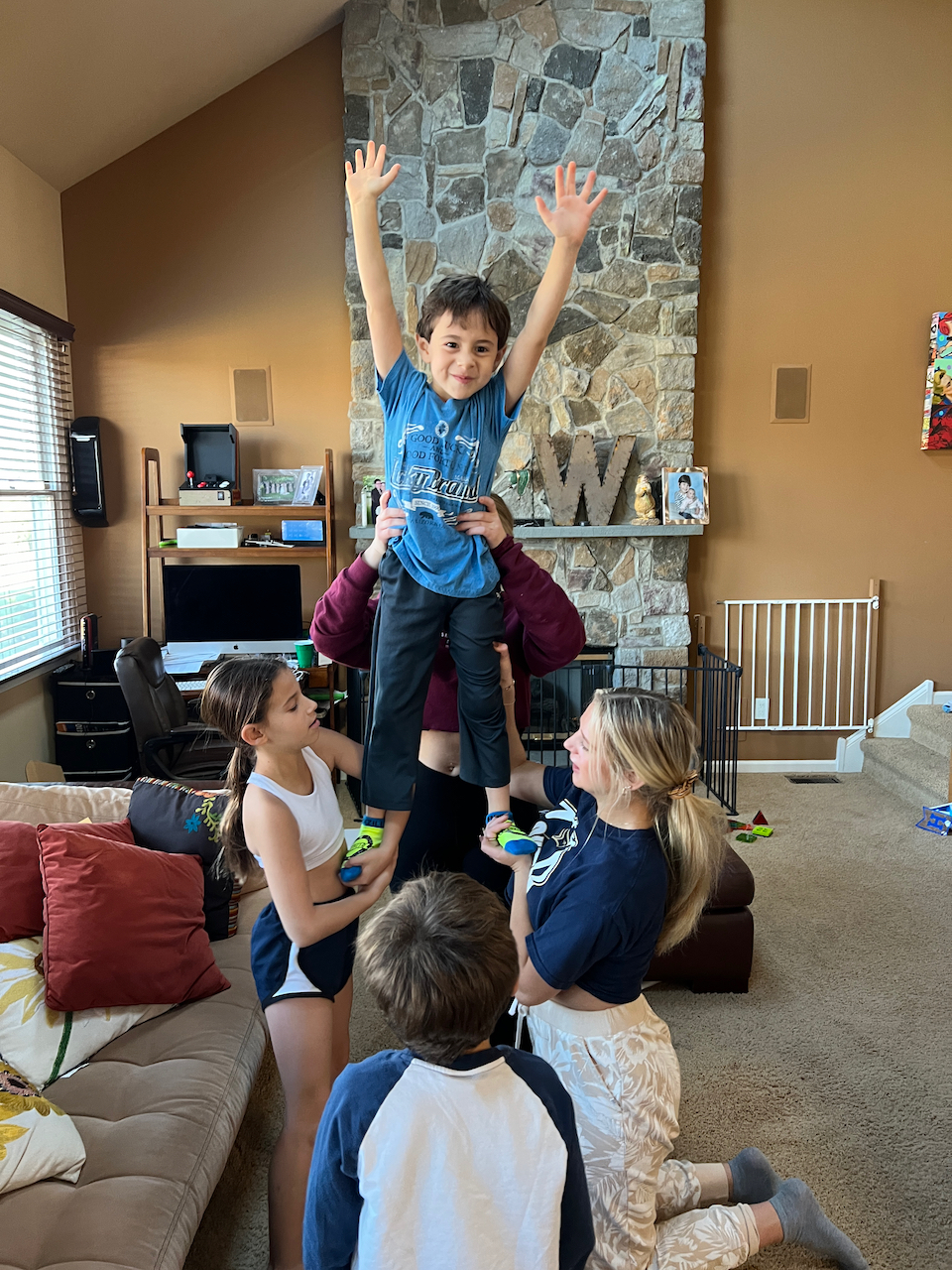 Last Tuesday, Ariel did some cheer exercises.